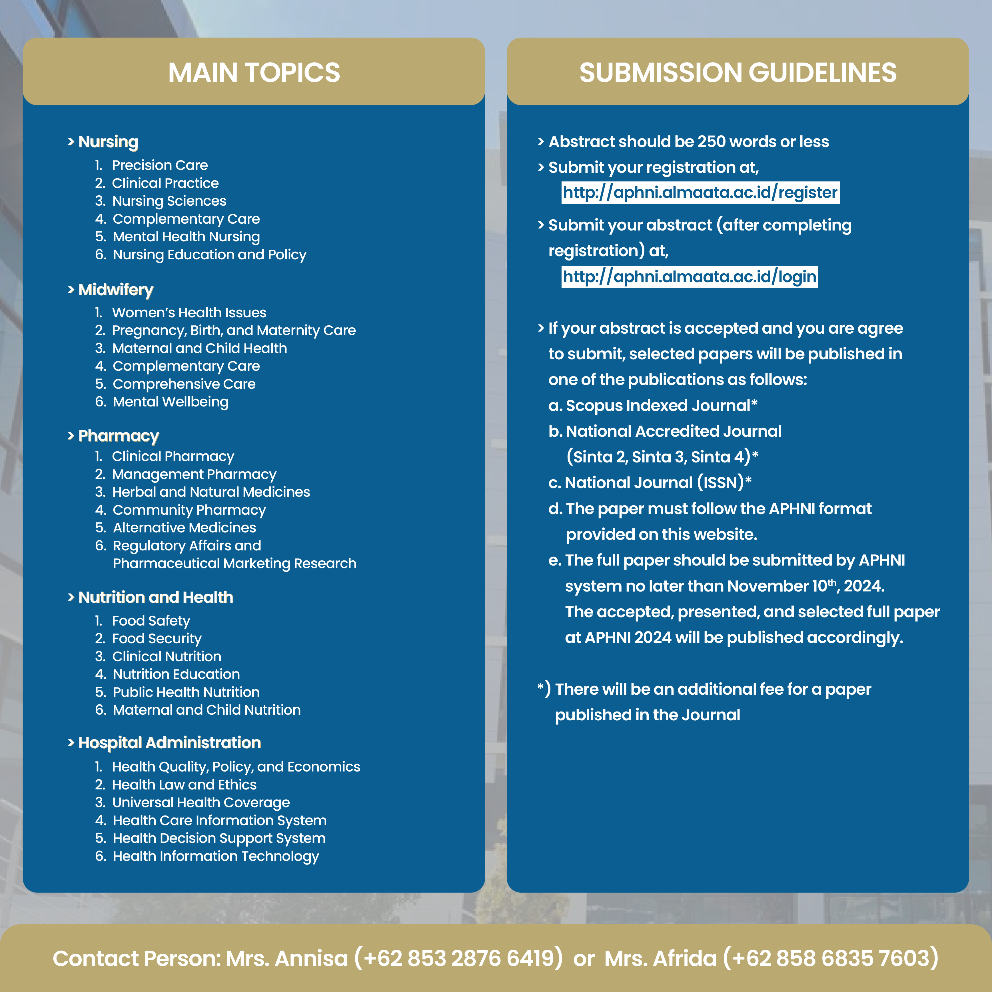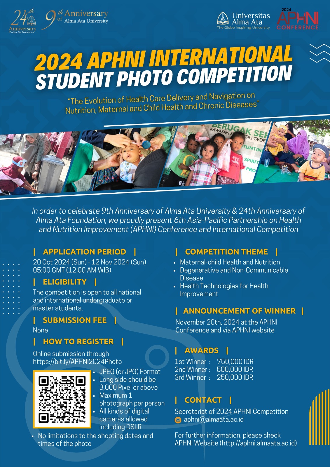 Do not lose this opportunity; take part in the Asia-Pacific Partnership on Health and Nutrition Improvement (APHNI) Conference on Nvember 20th, 2024 which is in order to celebrate 9th Alma Ata University Anniversary & 24th Alma Ata Foundation Anniversary, hosted by Faculty of Health Sciences Alma Ata University. Grab it fast! Register before the conference seats run out. See you at the APHNI Conference.